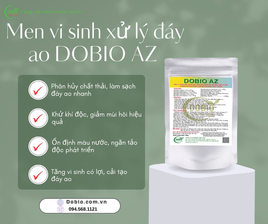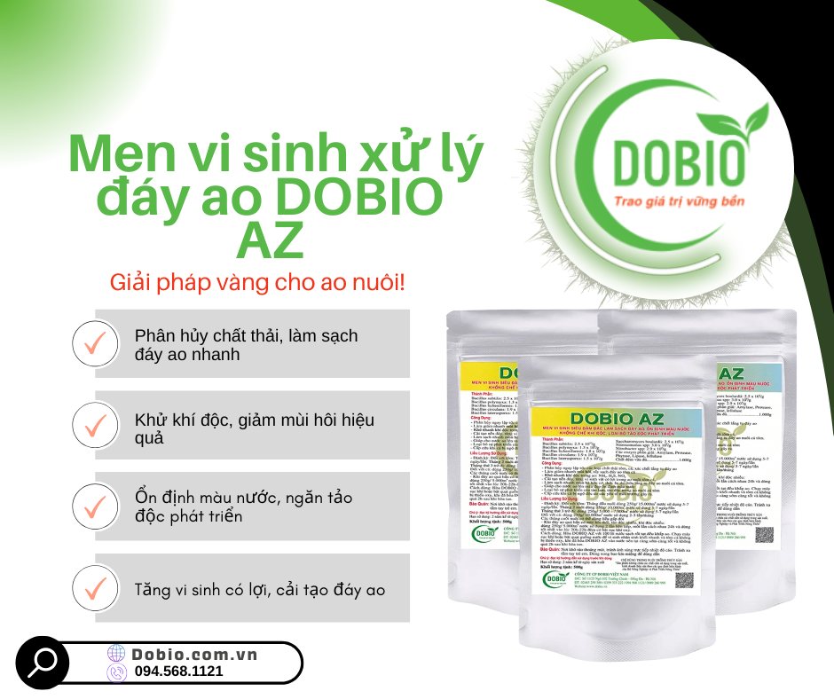 Nếu không xử lý kịp thời, toàn bộ vụ nuôi sẽ gặp nguy cơ lớn. Vậy giải pháp là gì? DOBIO AZ – men vi sinh siêu đậm đặc là công cụ tối ưu giúp xử lý tận gốc vấn đề từ đáy ao.